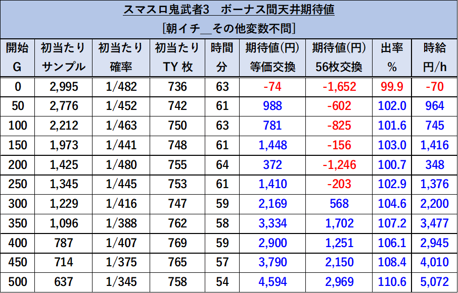 さらに、リセット後は200G以内のボーナス当選期待度が50%OVERと高く、朝イチは早めのボーナス当選に期待できます。
